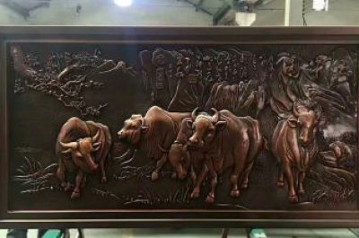 玻璃鋼仿銅《五牛圖》浮雕裝飾畫